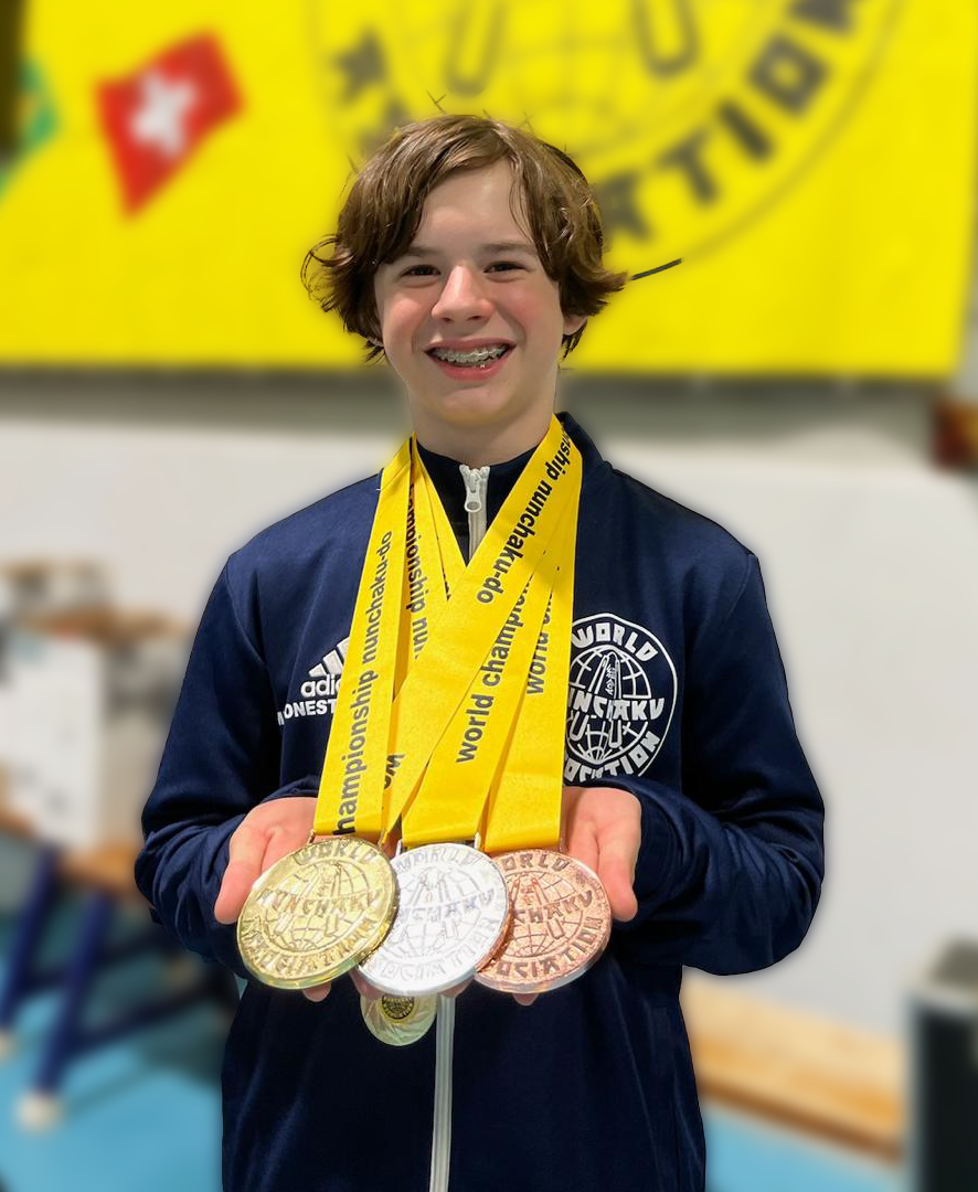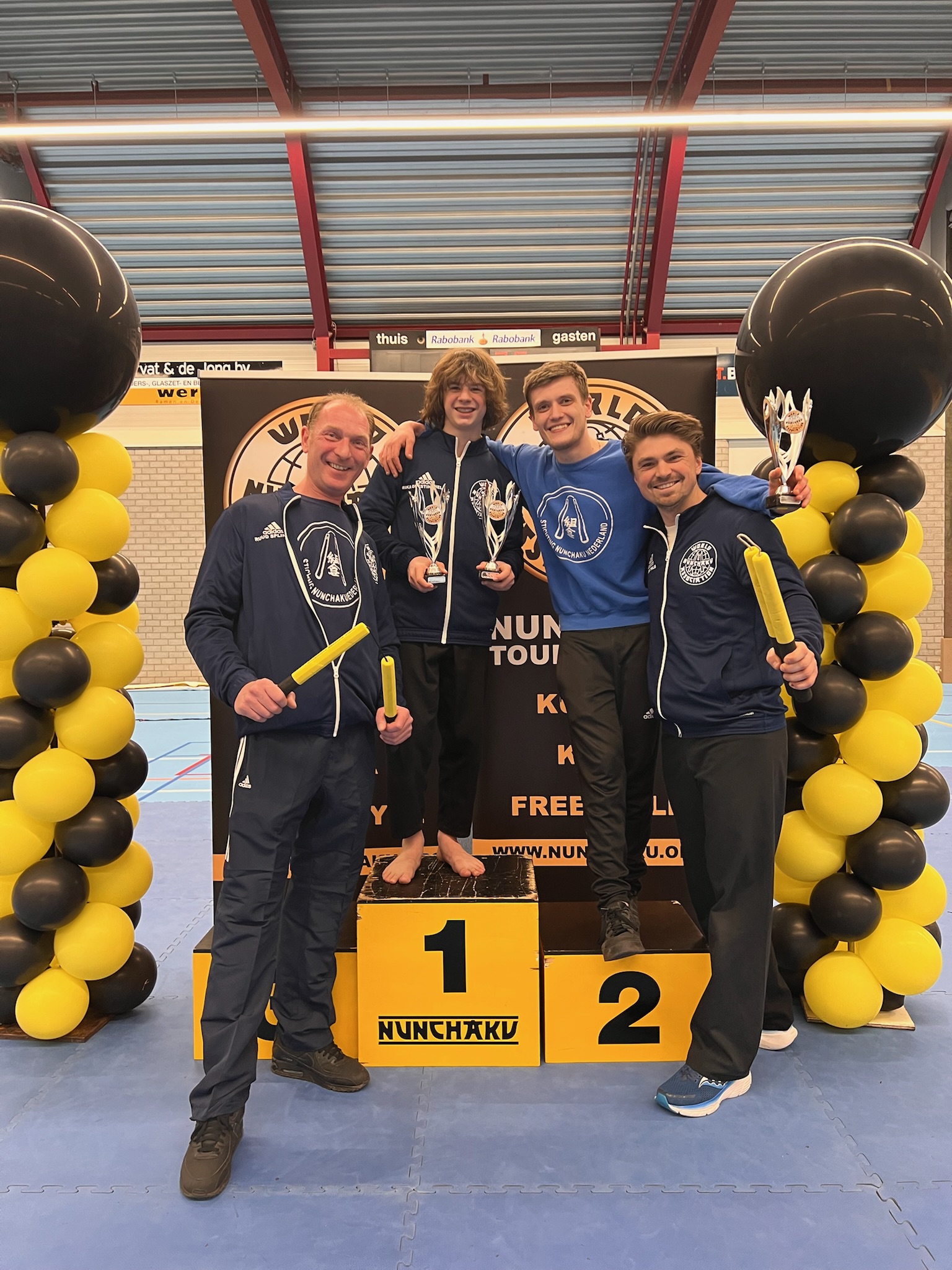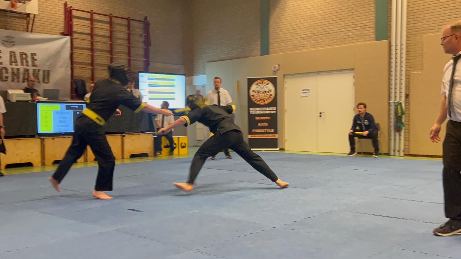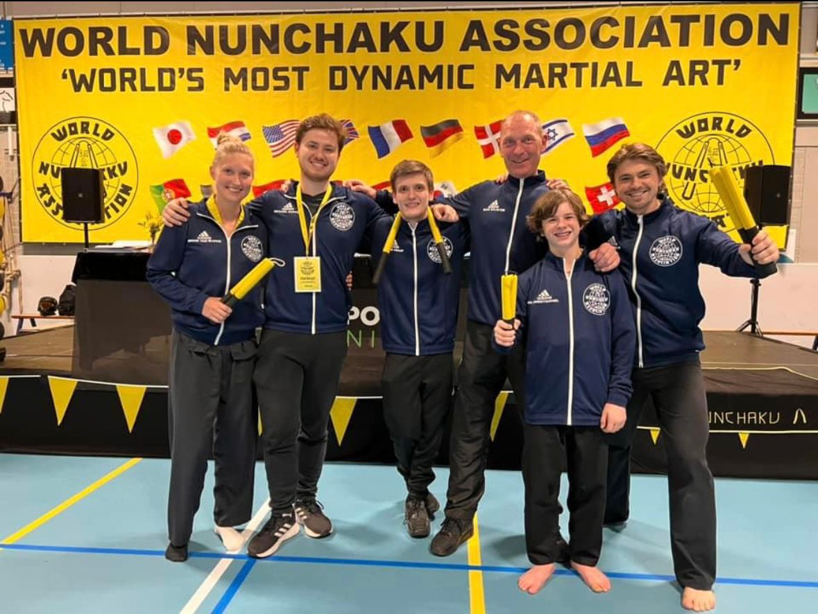Hier bij Nunchaku Amstelveen geeft oprichter van de sport, Milco Lambrecht, les aan groep enthousiaste leerlingen van verschillende niveaus en leeftijden.