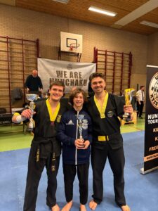 De Amstelveense Nunchaku club was present op het jaarlijks terugkerende Henny & Istvan Eek toernooi. Een toernooi welke bekend staat als debutantentoernooi. De recent begonnen Nunchaku-ka’s hebben hier de gelegenheid om ervaring op te doen hoe het is om een kata voor te lopen voor een vierkoppige jury en het muisstille publiek. In het middelpunt van de belangstelling de zenuwen de baas te zijn. Dat deed onze Sem Onestinghel. Als gele bander liep hij voor de eerste keer de 1e Schakelkata. Nuttige ervaring voor de komende toernooien met ook nog een resultaat om trots op te zijn. Met zeer ruime voldoendes is de kop eraf voor onze Sem.