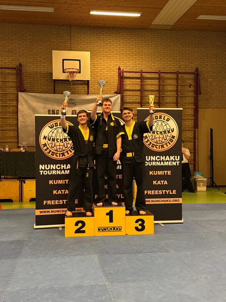 Ook Jop de Graaf (2e) en Luuk Thijs (3e) waren ingedeeld op het onderdeel kumite -1.85m. Zij kwamen elkaar twee keer tegen op de mat waarbij de overwinning naar allebei de mannen eens is gegaan. Luuk verliest van Tim Geurts (1e) en Jop wint van Brent Wilson en Alexander Versluijs. Prachtige resultaten voor Nunchaku Amstelveen met tweeman sterk op het podium.